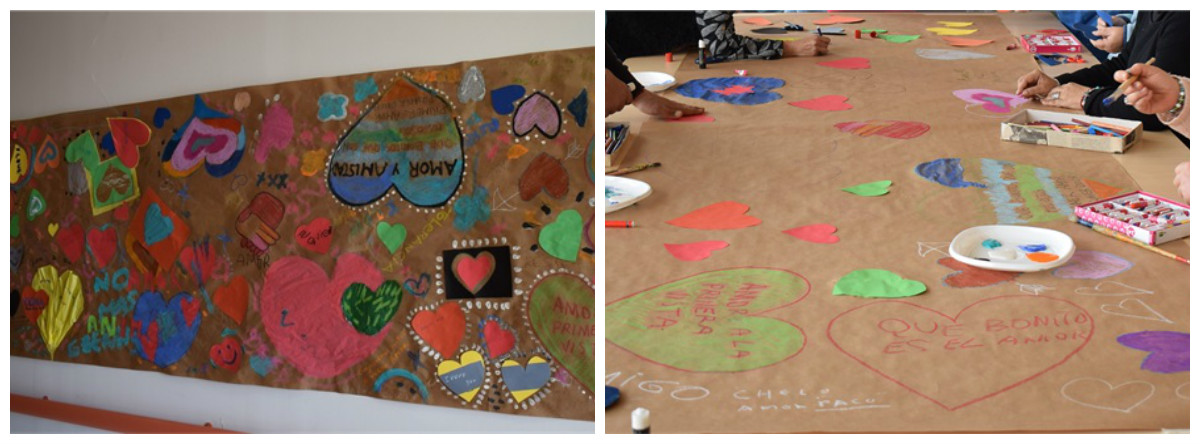 Con motivo del día de San Valentín, se realiza un mural colectivo para representar el amor.