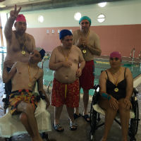Usuarios de Can Raspalls asisten a la clausura del curso de natación 2017-2018.