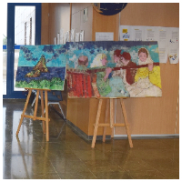 Como otros años, los usuarios del centro de día de salud mental realizaron una exposición con sus propias obras, creadas al largo del año. Estas obras muestran rincones de la isla, obras de otros artistas, autorretratos, entre otras, desde su perspectiva y visión. Además, algunas de las obras van acompañadas con una breve explicación de algunos de los usuarios y las usuarias, de como se sienten al pintar y como utilizan el arte como medio de expresión.