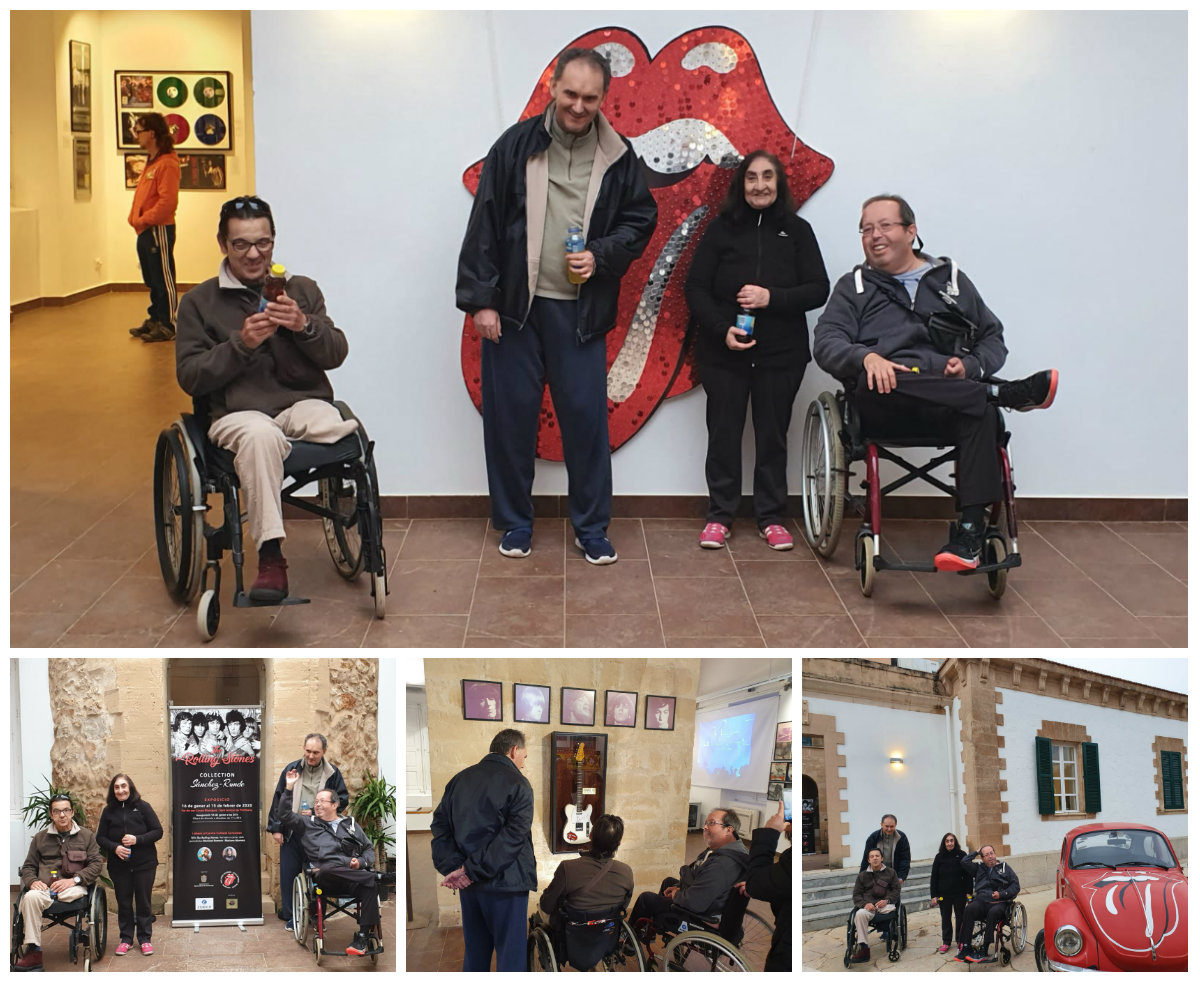 Usuarios de la Residencia Can Raspalls visitan una exposición sobre la banda británica de rock The Rolling Stones.