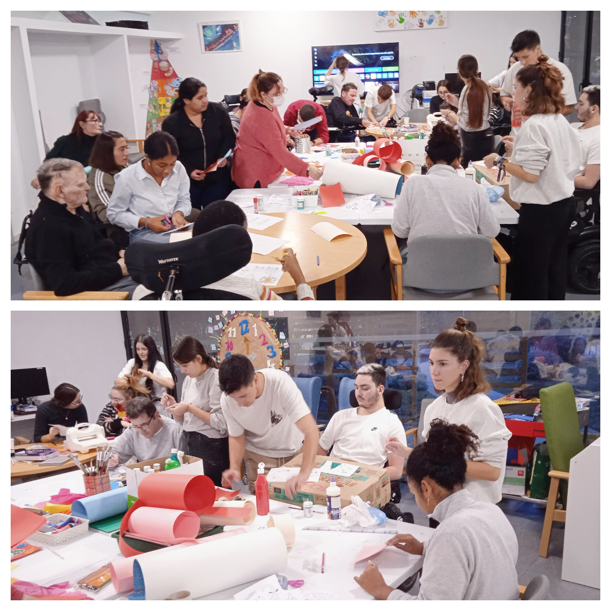 Con la finalidad de fomentar la interacción de las personas residentes del centro con otras personas, colectivos y realidades, recibimos la visita de un grupo de alumnos del IES Ramón Llull de Palma (del Ciclo Formativo en Animación Sociocultural) para realizar, conjuntamente con las personas residentes y usuarios del centro, unas postales navideñas muy especiales.