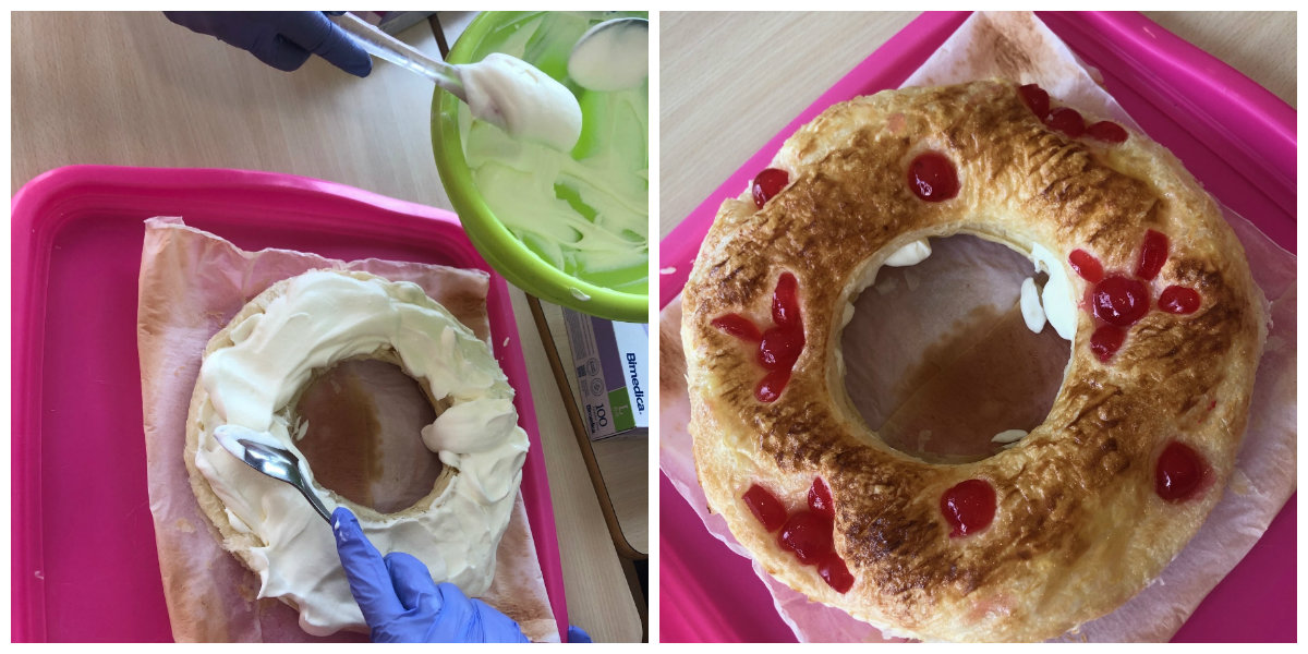 El siguiente paso consiste en montar el roscón, como podéis ver en la imagen.