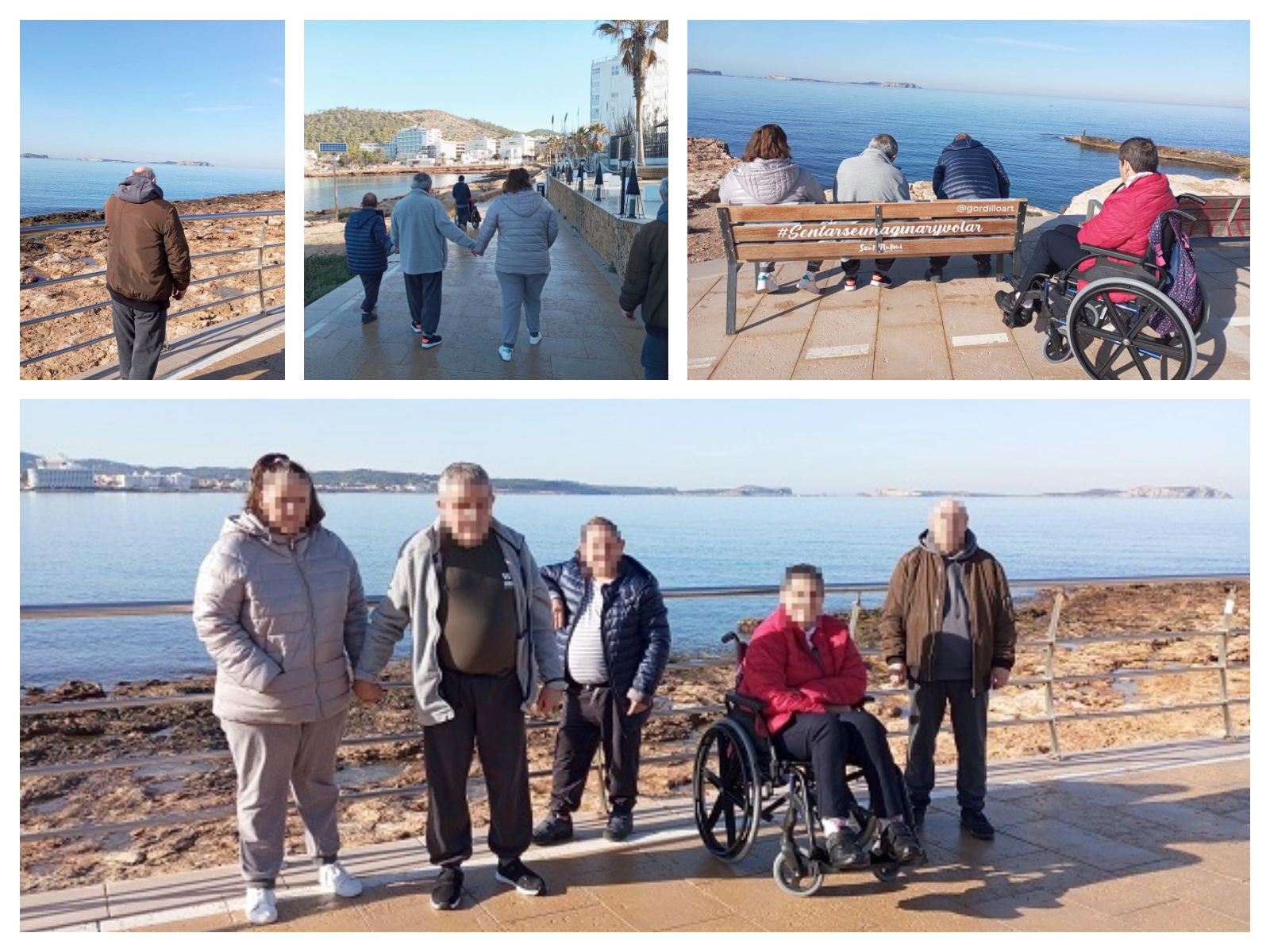 Aprovechando la soleada mañana, un grupo de residentes y personas usuarias del Centro de Día de Can Raspalls fueron a San Antonio donde disfrutaron de muy tiempo, calma yserenidad emitida por la brisa marina, no propias de estas fechas.