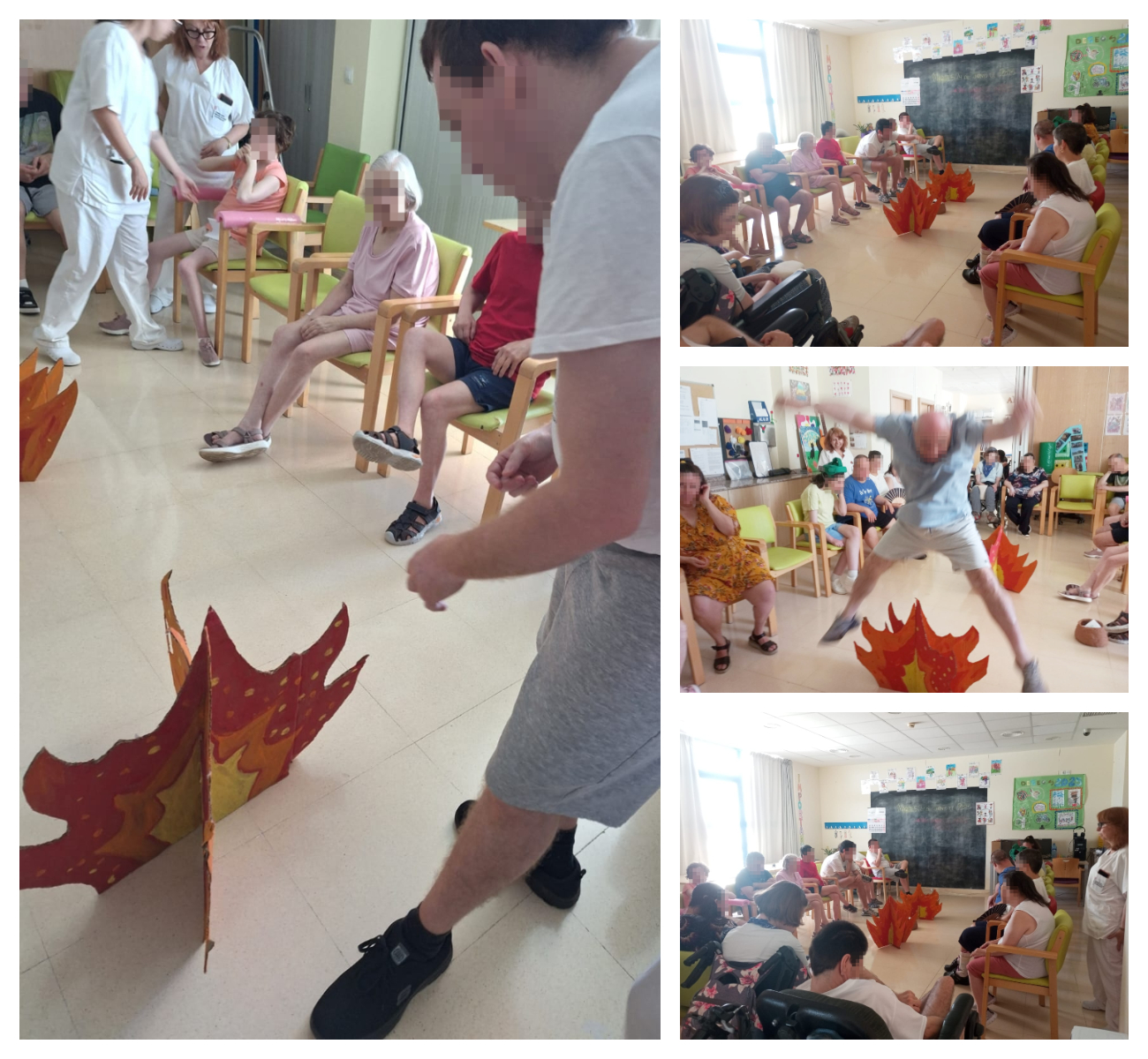 cada uno de ellos ha interpretado su forma de San Juan. También hemos realizado una dinámica que consistía en que cada uno de ellos cerraba los ojos y pensara en su deseo; después con papel simbólico lo hemos tirado en la hoguera para que se cumpliera y hemos saltado por encima de ellos o, los que no podían, han pasado por los lados de la hoguera.