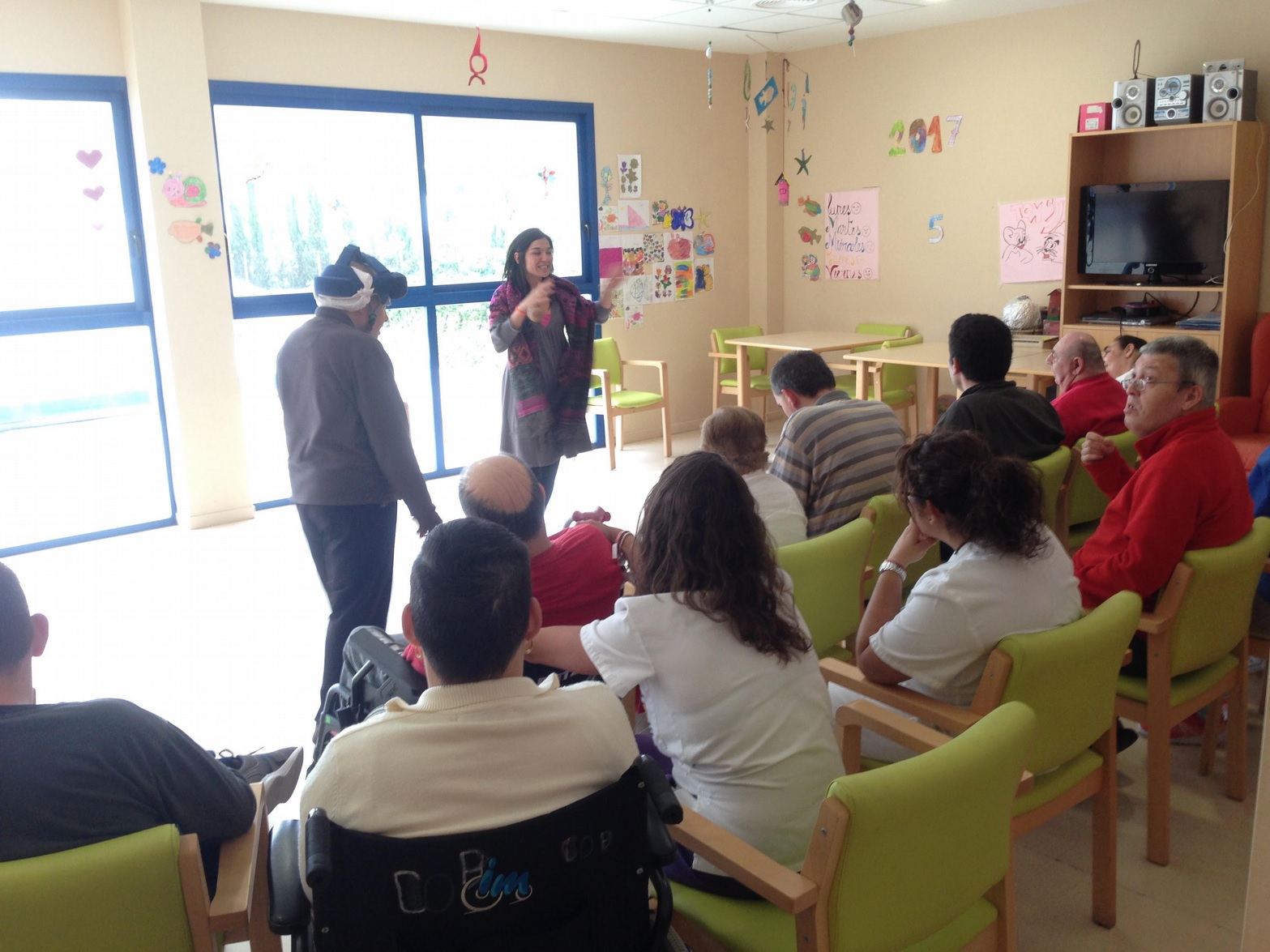 El pasado 5 de abril los usuarios de la Residencia Can Raspalls recibieron en sus instalaciones la visita de dos monitoras de la Biblioteca Vicent Serra Orvay del municipio de Sant Jordi de Ses Salines para realizar un taller de cuentacuentos. Durante la sesión, los usuarios pudieron escuchar el recital de varios cuentos de diferentes temáticas. Además, participaron e interactuaron realizando diferentes ritmos musicales y sonidos, y repitiendo frases y canciones. Los asistentes se lo pasaron muy bien. Desde el centro agradecemos a la Biblioteca de Sant Jordi la realización de dicha actividad.