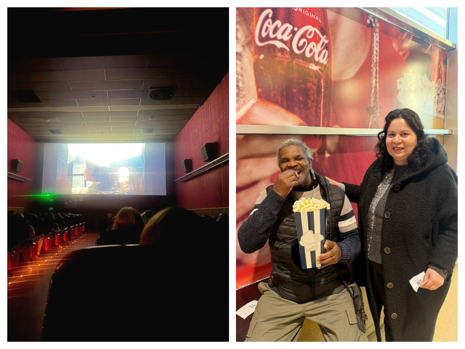 Al llegar allí, uno de nuestros residentes decidió entrar de manera autónoma a ver una película de acción y, Natalia y yo, nos quedamos viendo una película de amor.