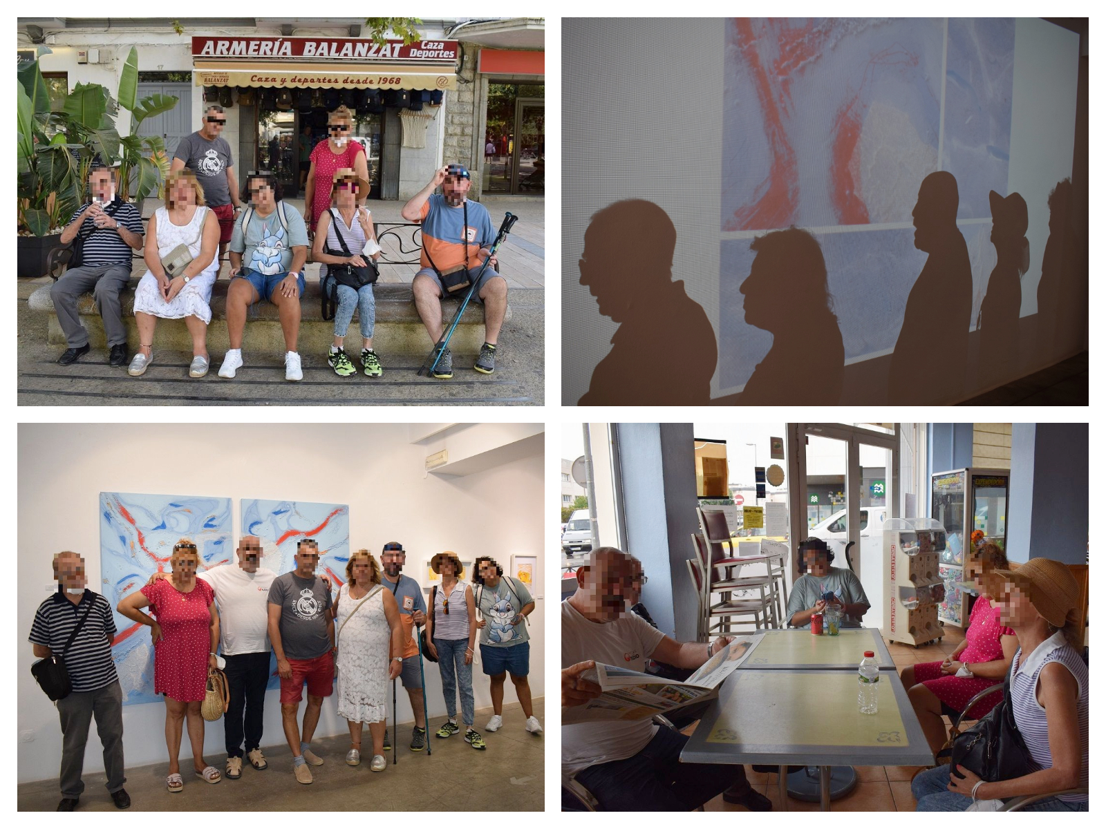 Como todos los viernes hacemos la actividad de la salidas de ocio y hoy, con el bus de línea, deciden visitar la sala de Sa Nostra para ver la exposición de pintura de la artista Carmen Liberal Siso, collages del mediterráneo.