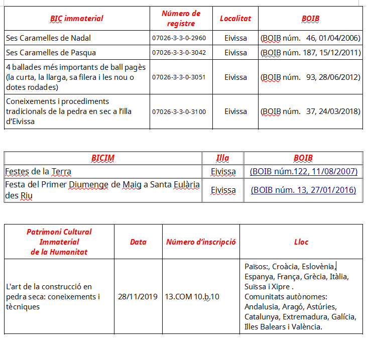 DECLARACIONS DE BÉNS D’INTERÈS CULTURAL IMMATERIAL A EIVISSA