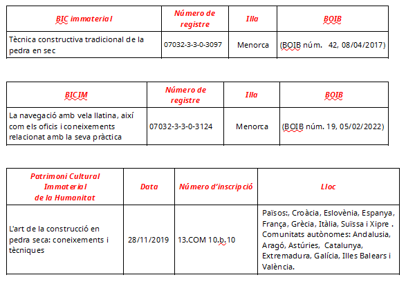 DECLARACIONS DE BÉNS D’INTERÈS CULTURAL IMMATERIAL A MENORCA