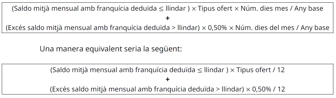 El tipus d'ofert per cada una de les entitats tresoreres, aplicable sobre els saldos bancaris positius mitjans per sota del llindar, és el següent: