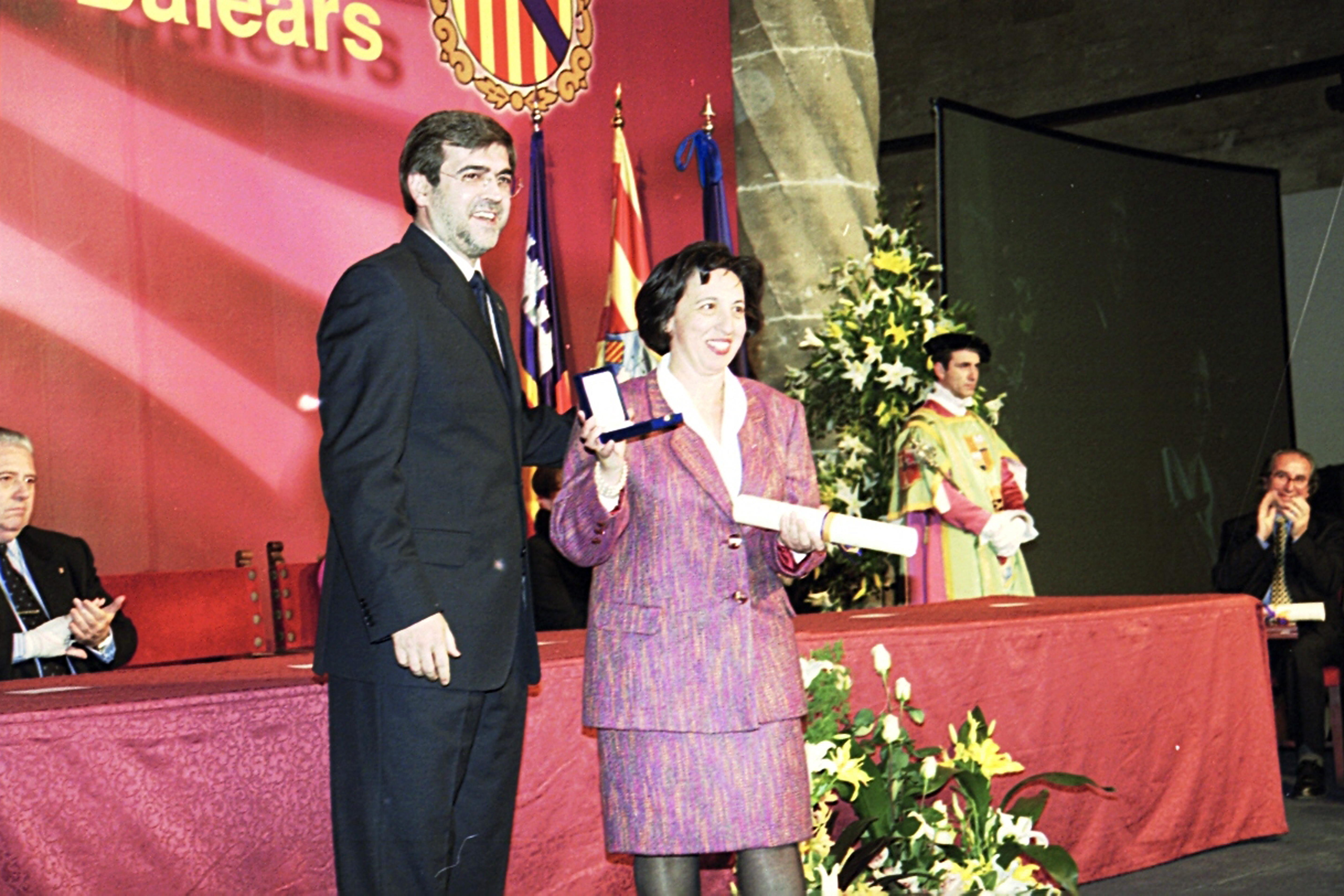 María Barceló Crespí recibe, en representación de la Sociedad Arqueológica Luliana (SAL), la Medalla de Oro de la Comunidad de manos del presidente Francesc Antich