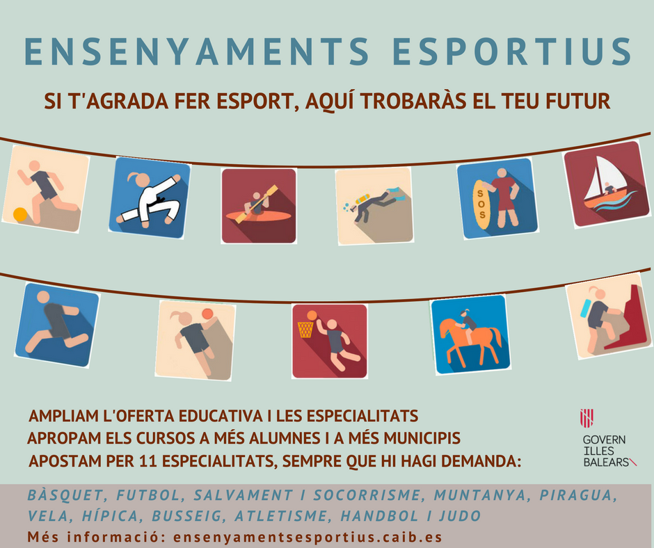 Els Ensenyaments Esportius són una formació que et capacita per desenvolupar una activitat professional en el camp de l'activitat física i l'esport: iniciació esportiva, tecnificació esportiva i conducció de l'activitat o pràctica esportiva en tota la seva extensió així com a l'entrenament i dirección d’equips i esportistes d’alt rendiment.