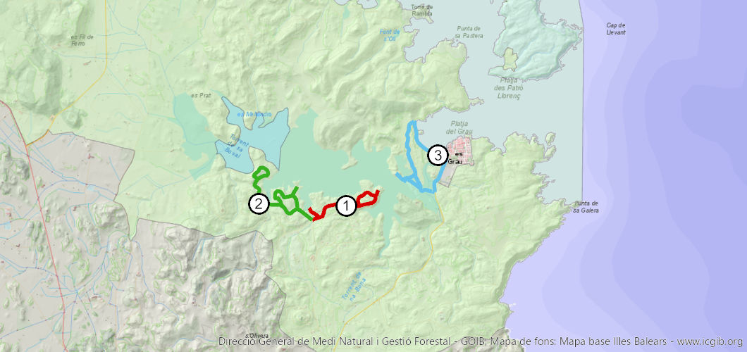 - Ruta GR223 “Camí de Cavalls” (etapes 1, 2 i 3).