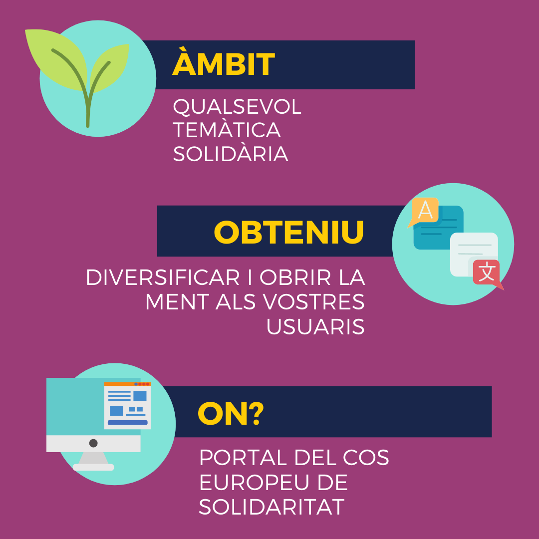 Gràcies a aquests dos programes, Erasmus+ Joventut i el Cos Europeu de Solidaritat, les ENTITATS disposaran de finançament per dur a terme: