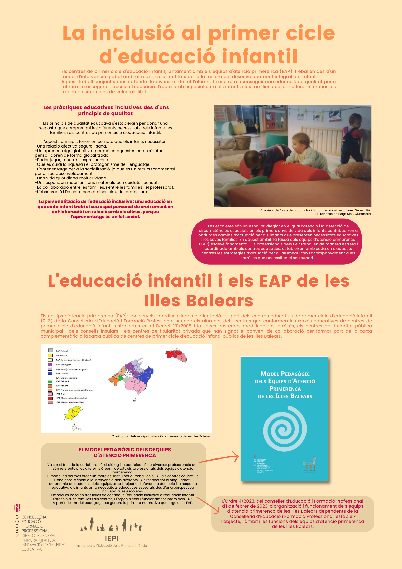 El Instituto para la Educación de la Primera Infancia (IEPI), adscrito a la Dirección General de Primera Infancia, Atención a la Diversidad y Mejora Educativa, es un órgano creado en noviembre de 2008 con el objetivo de coordinar todas las actuaciones que tienen que ver con la primera infancia de la Consellería de Educación y Universidades.