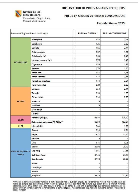 L'observatori de preus va ser creat com a eina que permet recollir i consultar les dades de preus en origen i destí de diferents aliments primaris produïts a les Illes Balears.