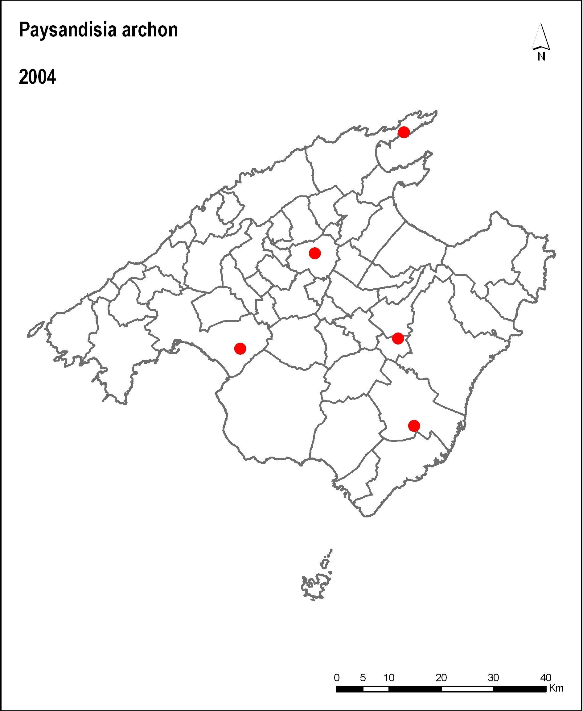 A finals de març de 2013, encara no hi ha cites de Paysandisia archon ni a Eivissa ni a Formentera.