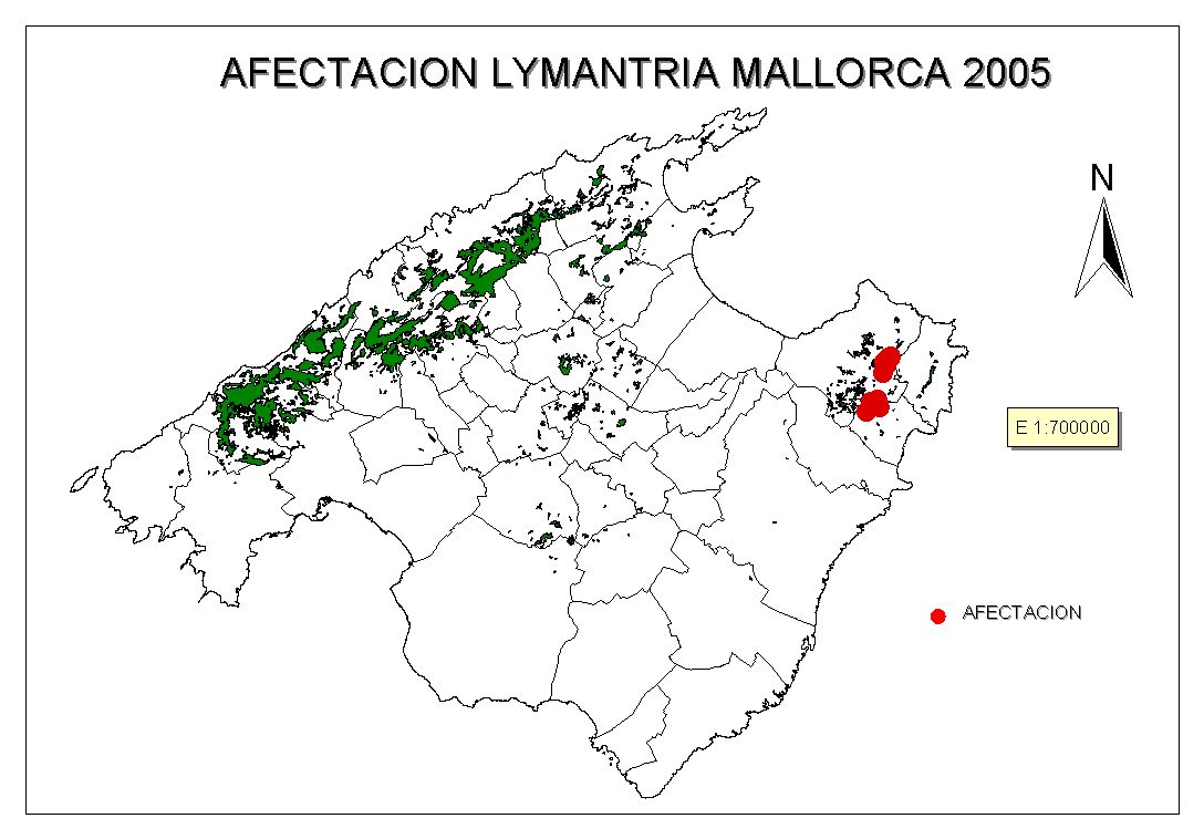 Mapa de afectación de Lymantria - 2005