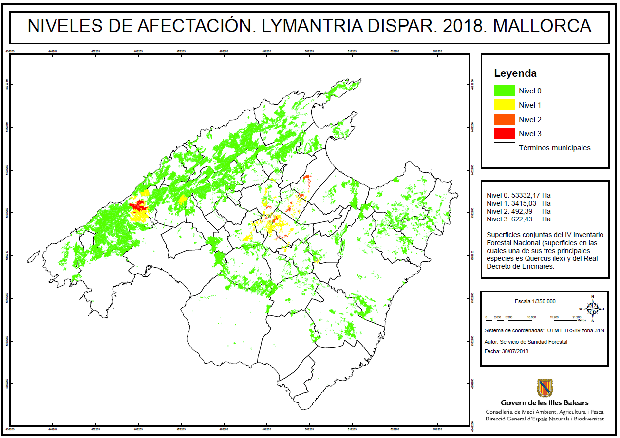 Mapa de afectación de Lymantria - 2018