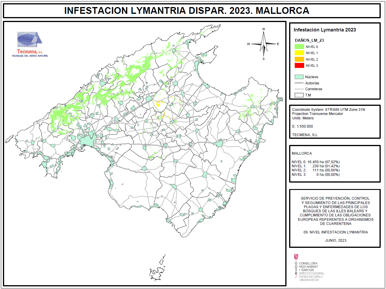Mapa de afectación de Lymantria - 2023