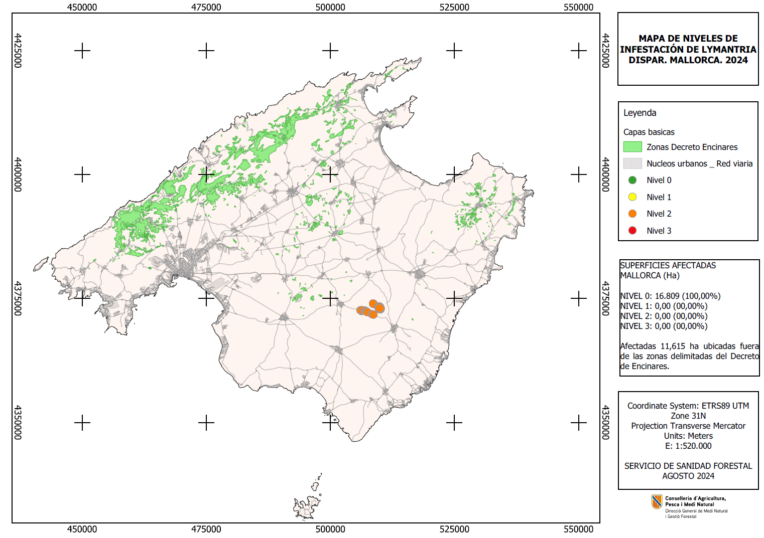 Mapa de afectación de Lymantria - 2024