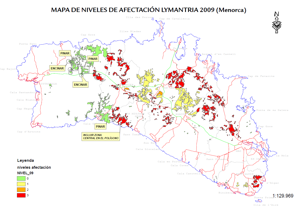 Mapas de afectación de la procesionaria del pino en las Islas Baleares