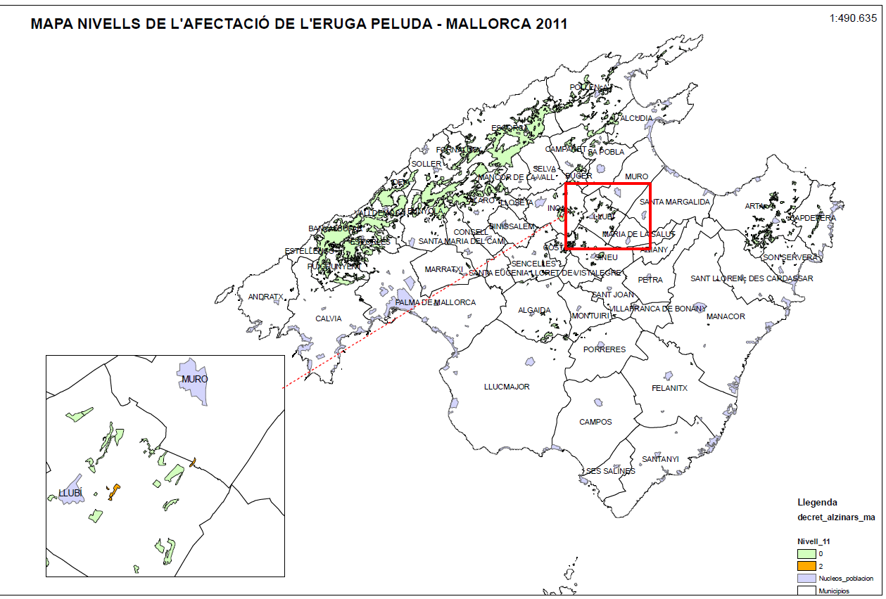 Mapas de afectación de la procesionaria del pino en las Islas Baleares