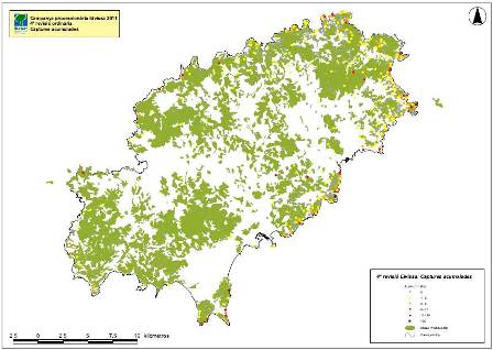 Mapas de afectación de la procesionaria del pino en las Islas Baleares