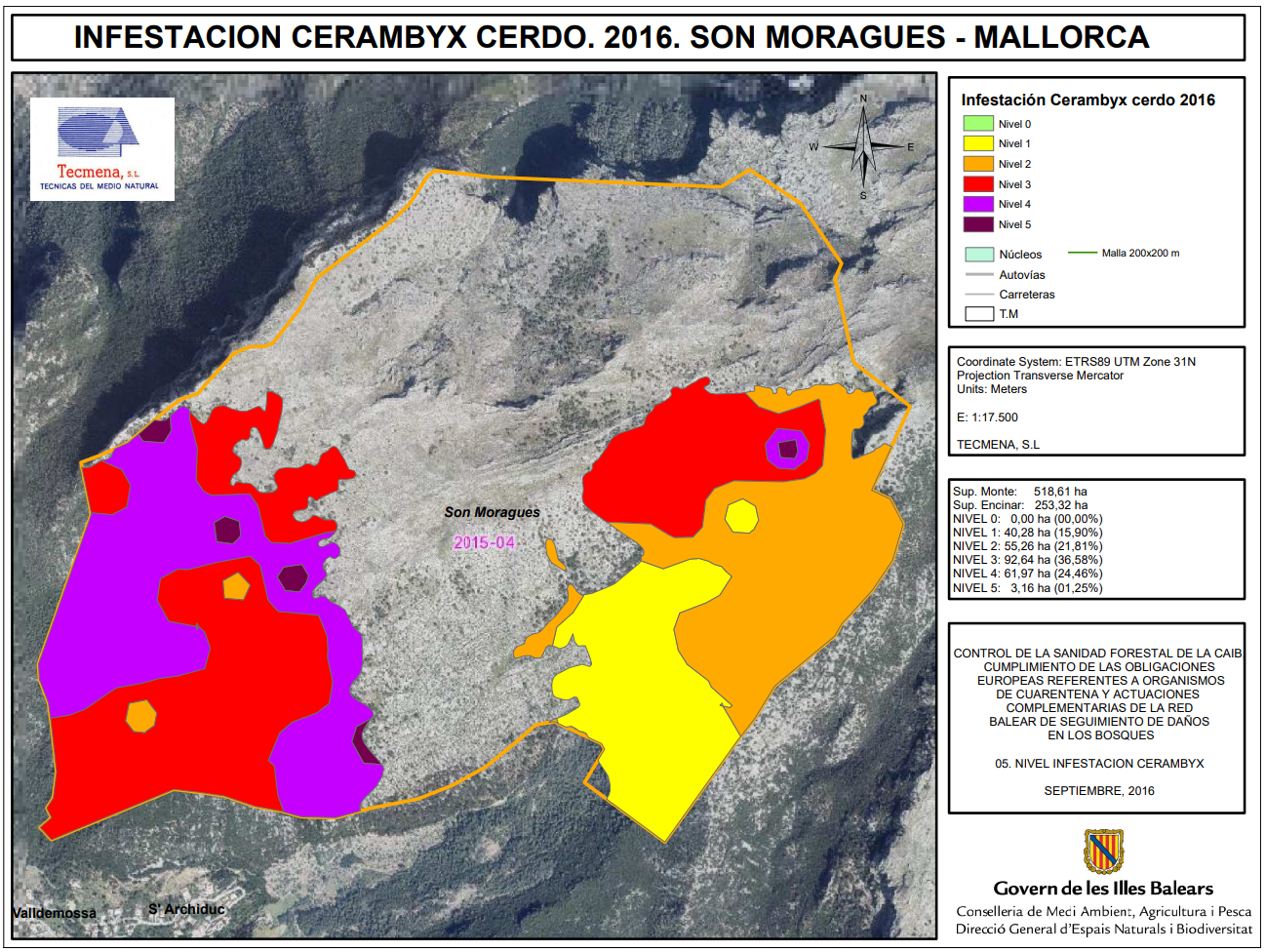 Mapas de afectación de la procesionaria del pino en las Islas Baleares