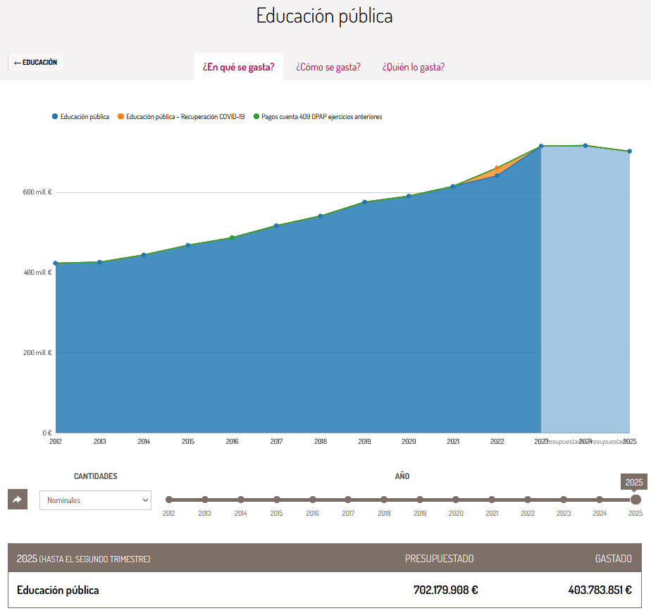 2. Después puede acceder a los diferentes programas en que es desglosa el coste en educación, por ejemplo, el gasto en educación pública: